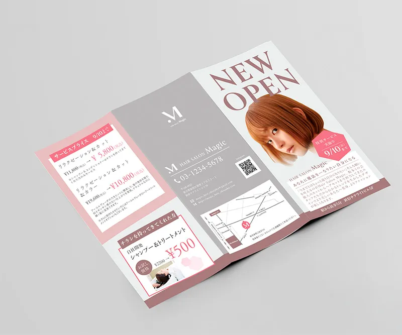 新宿のヘアサロン「マジック」の三つ折りパンフレットを作成しました!