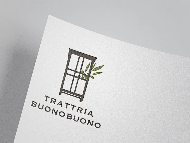 イタリアンレストランのショップカード 2025-06-10 | card, logo 鎌倉古民家レストランのショップカード。名前:Buono Buono窓からオリーブが見える落ち着いたレストランの様子を表し、文字の部分もオリーブ色で全てまとめて、レストランのコンセプトに合わせました。制作時期:2023年10月